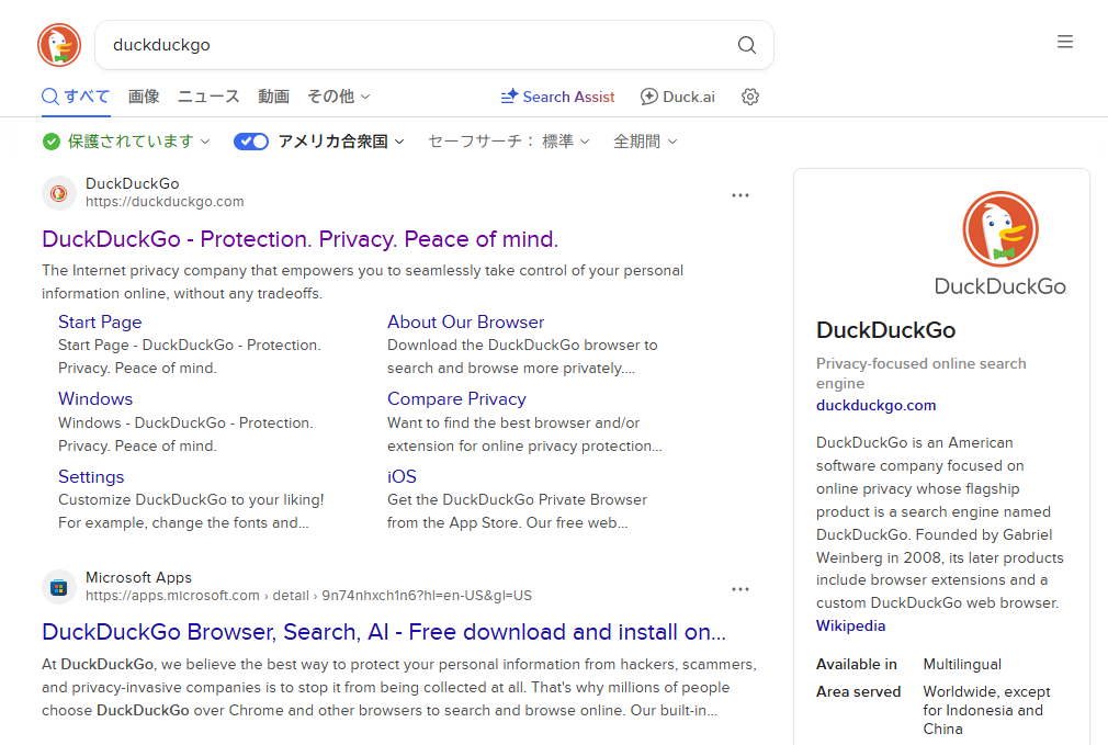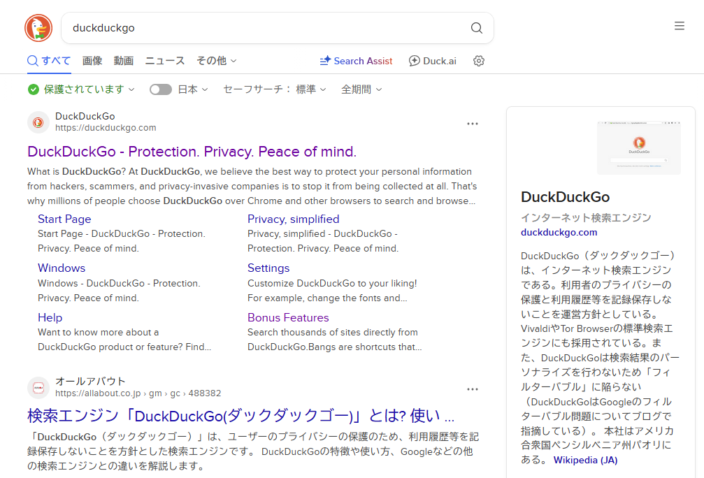 日本語の記事が少ない分野や、英語で書かれたドキュメントなどの原文を探したい場合もDuckDuckGoはとても便利に使うことができます。