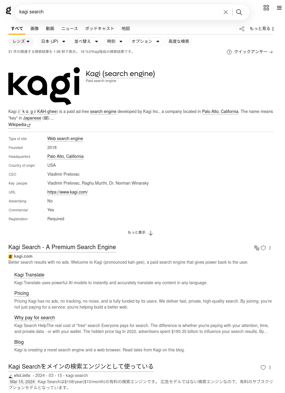 Kagi は有料の検索エンジンです。広告が表示されることがなく、検索結果に集中できるようになっています。また、プライバシーの尊重を謳っているほか、検索結果のカスタマイズもできるようになっています。